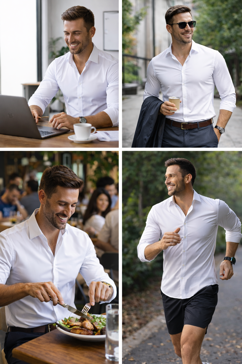 Vücudunuzla doğal şekilde uyum sağlayan esnek yapısı ve kırışmayan kumaşıyla bu gömlek, premium yakası sayesinde her zaman kusursuz bir duruş sunar